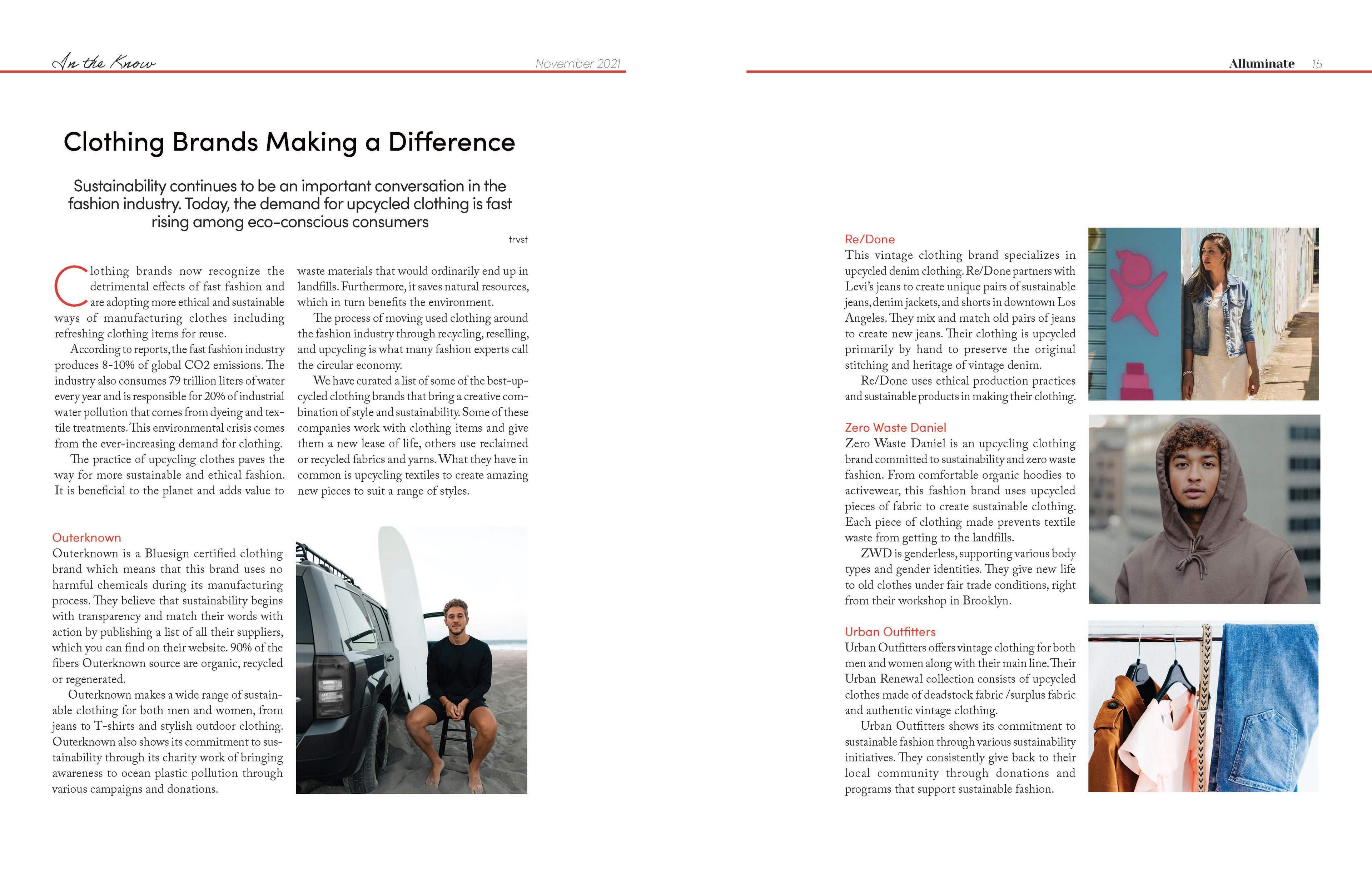 Alluminate magazine is intended to help people live mindfully in a throw-away world through upcycling, and recycling. The magazine also casts illumination on the science and technologies that are being developed to move towards more mindful manufacturing in a world that truly needs them.